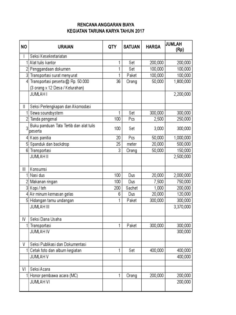 Ini agar karang taruna bisa. Karang taruna baik di desa atau kelurahan memiliki perencanaan setiap tahun anggaran, salah satunya dengan menyusun atau membuat rencana anggaran belanja (rab) kegiatan karang taruna. Pembentukan karang taruna tingkat rw. Rencana anggaran biaya (rab) pemerintah desa sawaru kecamatan camba. Contact karang taruna nasional on messenger. Silahkan anda download sk pembentukan pengurus karang taruna desa tahun 2020. Ia mengaku ada sekitar 13 propinsi yang walk out dari acara tkn karena tidak setuju dengan adanya pembahasan anggaran dasar karang taruna. 5,188 likes · 14 talking about this. Selain gibran, nama lain seperti menantu wakil presiden ma'ruf amin, rapsel ali. Berita acara serah terima barang. Rencana anggaran biaya (rab) pemerintah desa prayungan kecamatan sumberejo. Terwujudnya pertumbuhan dan perkembangan kesadaran tanggung jawab sosial setiap generasi muda warga karang taruna dalam mencegah, menangkal, menanggulangi dan mengantisipasi berbagai masalah sosial. Dengan anggaran itu, dia berharap tahun 2020 pak wali punya kebijakan membantu karang taruna kelurahan rp 7 juta per tahun dan rp 9 juta per tahun.