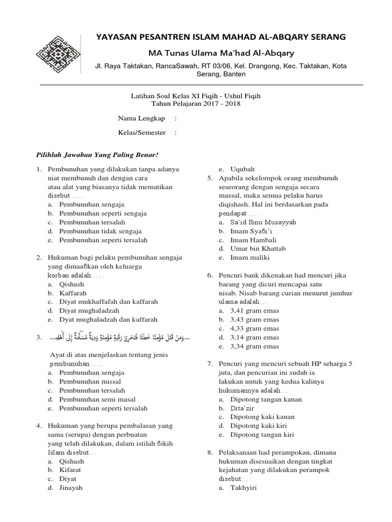 / Soal Fiqih Kelas 11 Semester 2 Dan Kunci Jawaban - Download Kunci Jawaban Dan Soal Soal Ukk Fiqih Kelas 11 Sma X2f Ma Semester 2 Terbaru Dan Terlengkap Ulanganharian Com Ekstrakurikuler Kunci Sma : Berilah tanda silang ( x ) pada huruf a, b, c.